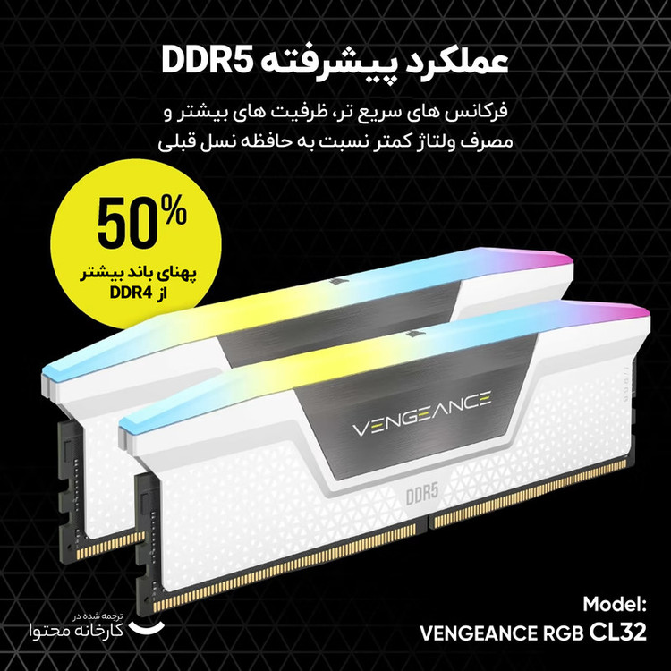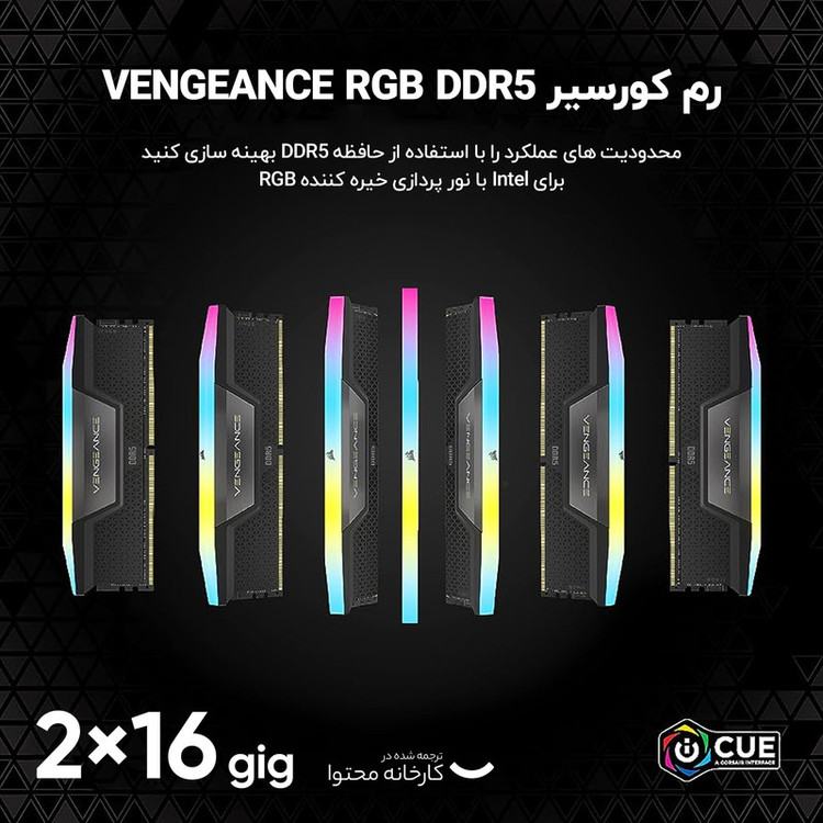 رم دسکتاپ DDR5 دو کاناله 6400 مگاهرتز CL32 کورسیر مدل VENGEANCE RGB ظرفیت 32 گیگابایت