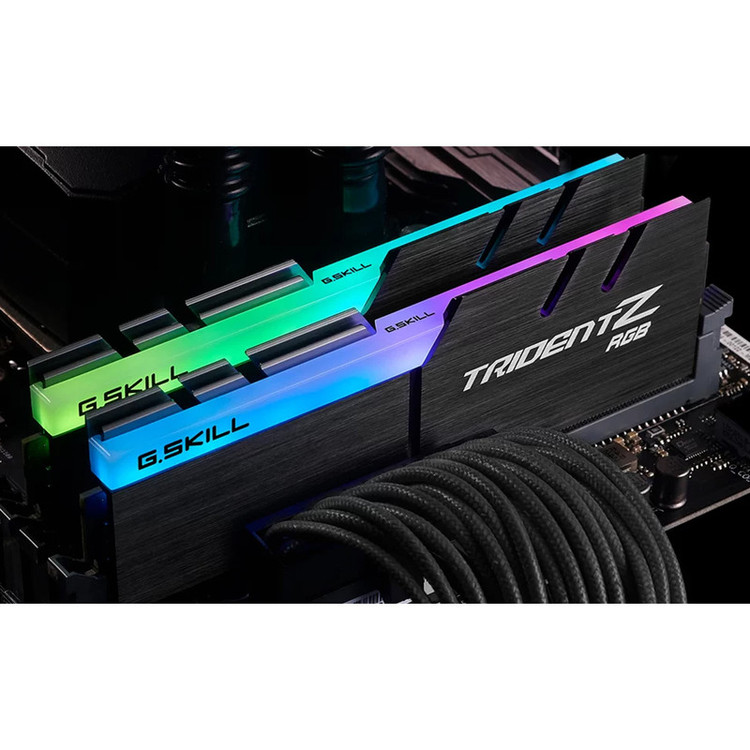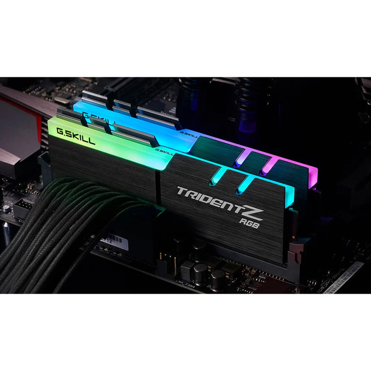رم دسکتاپ «جی.اسکیل» مدل «TRIDENT Z RGB» در دستهی رمهای دوکاناله قرار میگیرد. ظرفیت رم TRIDENT Z RGB برابر 32 گیگابایت است؛ یعنی هر ماژول آن 16 گیگابایت ظرفیت دارد. نوع حافظهی این رم DDR4 است که از 288 پین بهره میبرد. رمهای DDR4 توان مصرفی و گرمای تولیدی اندکی دارند. مانند بسیاری از محصولات مشابه، برای خنکسازی این رم از سیستم هیتسینک استفاده میشود. این رم دسکتاپ از قابلیت XMP برخوردار است و از نسخهی 2.0 این تکنولوژی پشتیبانی میکند؛ البته این موضوع به نوع CPU و مادربرد (Motherboard) بستگی دارد. فرکانس این رم جی.اسکیل (G.Skill) برابر 3200 مگاهرتز است. از ویژگیهای جذاب این رم باید به طیف رنگهای مختلف در قسمت بالای آن اشاره کرد. مصرف برق این ماژولهای حافظه فقط 1.35 ولت است. این رم رجیسترشده نیست و عملکرد آن به صورت Unbuffered است.