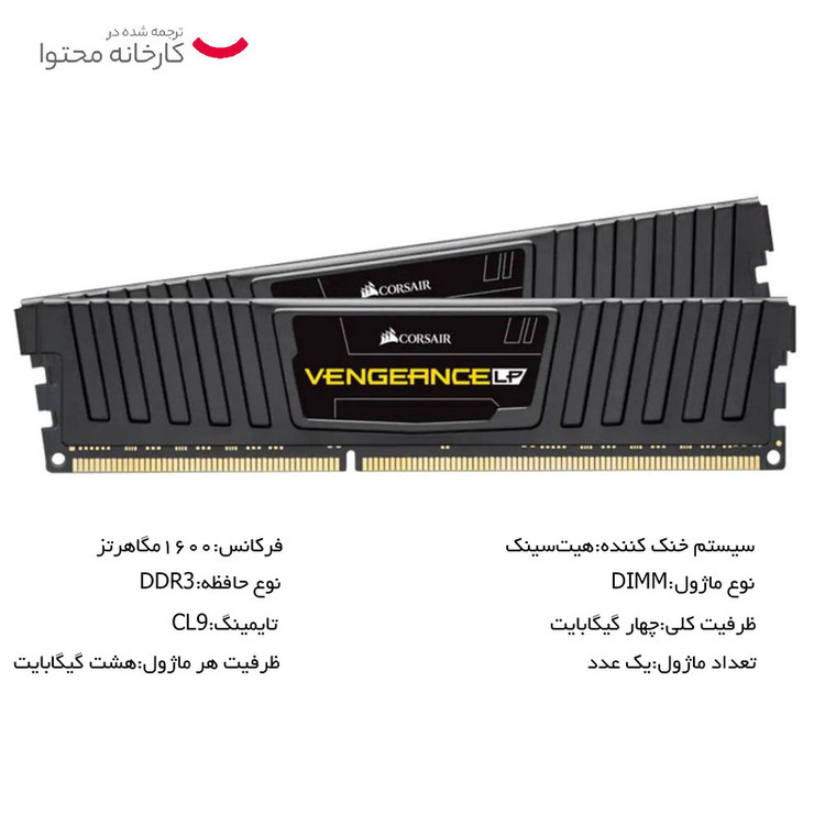 رم دسکتاپ DDR3 تک کاناله 1600 مگاهرتز CL9 کورسیر مدل VENGEANCE ظرفیت 4 گیگابایت