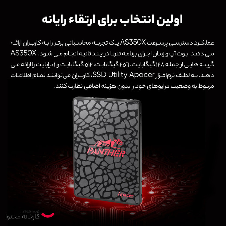 افرادی که زیادی با کامیپوتر و قطعات آن سروکار دارند به خوبی با قابلیت و کاربرد اس اس دی آشنا هستند. اس اس دی در حیقیت یک هارد دیسک است که روی کامپیوترهای پی سی یا لپتاپ سوار میشود و وظیفه پردازش و ذخیره اطلاعات را برعهده دارد. هارد دیسکهای اس اس دی در حقیقت از جدیدترین فناوری روز دنیا بهرهمند هستند و افراد را کمتر به زحمت تعویض آنها بابت خرابی میاندازند. این نوع سیستم در برابر ضربه به شدت مقاوم بوده و در زمان برخورد با اجسام دچار آسیب جدی نمیشود. همین موضوع سبب شده که کاربرانی که از لپتاپ به صورت مداوم استفاده میکنند به سمت خرید اس اس دی روی بیاورند. همچنین این نوع هارد دیسک عمر به نسبت بالاتری نسبت به سایر هاردها دارد. سرعت پردازش اطلاعات در SSD بسیار بالا است و صفحات ویندز یا فایلها به سرعت بالا میآید. اگر شما هم قصد خرید SSD را دارید ما به شما اس اس دی اینترنال اپیسر مدل AS350 PANTHER را پیشنهاد میکنیم که دارای ظرفیت 128 گیگابایت بوده و نوع رابط آن SATA 3.0 است.