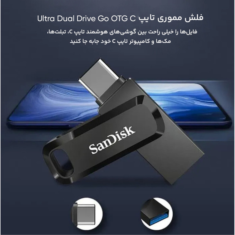 فلش مموری سن دیسک مدل Ultra Dual Drive Go OTG TYPE-C ظرفیت 32 گیگابایت