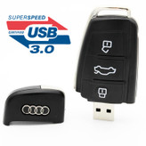 فلش مموری ریموت آئودی با ظرفیت 64 گیگابایت و رابط کاربری usb3.0 محصولی است که می تواند از هرنظر ایده آل باشد . این محصول خوش دست، با طراحی ریموت کنترل خودروهای این کمپانی بوده و دقیقا در سایز و ابعاد واقعی آن می باشد. این فلش مموری جزو محصولات فانتزی و اکسسوری بوده و با طراحی جمع و جور برای استفاده در خانه ، اتومبیل، محل کار و.... مناسب بوده و با تمامی سیستم های عامل سازگاری دارد همچنین فلش USB3.0 برای افرادی که سرعت و کیفیت بالا در انتقال اطلاعات برایشان اهمیت دارند بسیار مناسب است. بارزترين تفاوتي که يک کاربر رايانه ميتواند بين دو پورت USB 3 و USB 2 قائل شود، تفاوت پهناي باند اين دو نوع پورت است. يک پورت USB 2 ميتواند اطلاعات را با سرعت حداکثر 480 مگابيت بر ثانيه منتقل کند، در حالي که اين پهناي باند در USB 3 تا 10 برابر افزايش يافته است. سرعت انتقال اطلاعات از طريق پورتهاي USB 3 حداکثر 5 گيگابيت بر ثانيه است و اين موضوع، اصليترين دليلي است که يک کاربر رايانه را به استفاده از اين فناوري متمايل ميکند. این محصول 64 گیگابایت حافظه دارد که در آن می توانید براحتی فایل های صوتی و تصویری و .... خود را ذخیره سازی نمایید.